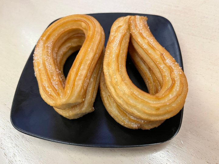 Breakfast at the local bar El Negrillón. Enjoying tasteful churros!
