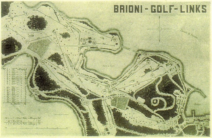 U jednoj promotivnoj ediciji, jednostavnog naziva Brioni, nalazimo mapu pretpostavljeno prvotnog izgleda terena. Premda nije u najboljoj rezoluciji, vidi se raspored rupa, a duljine i bogey (ili par) nažalost nisu čitljivi.